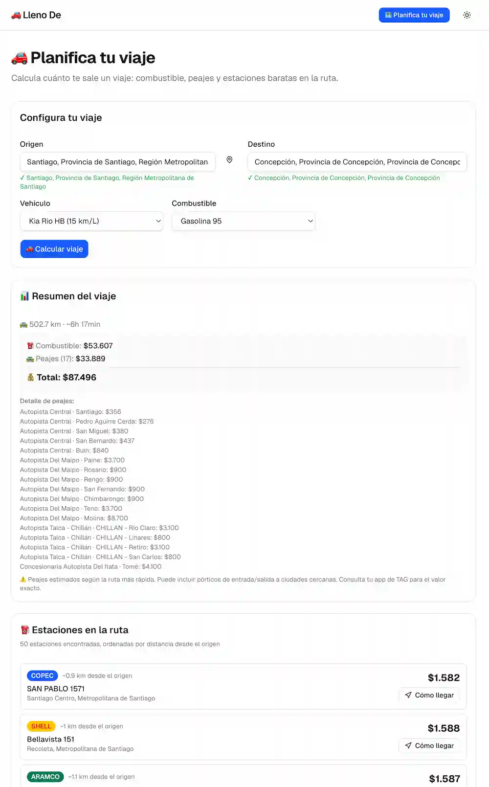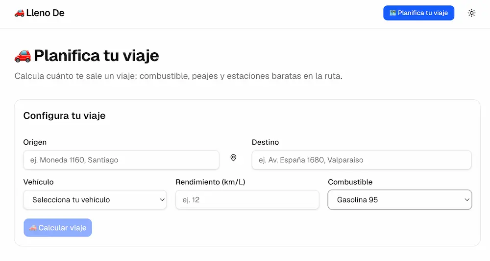 ¿Qué es Llenode.cl? Es una plataforma digital diseñada específicamente para conductores en Chile. Esta herramienta te permite calcular bencina, peajes y el costo total de tu recorrido en pocos clics.